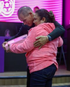 A nombre de las beneficiadas por este donativo de Racing de Veracruz, Micaela Rodríguez, tomó la palabra en este acto y agradeció “ a estas 2 señoras (dirigentes de MUAC) que de verdad hacen esto por nosotras, y a este equipo de jóvenes que nos están apoyando. Tenemos que cuidarnos la salud porque no hay nada mejor en esta vida vida que vivir sanos y con Dios siempre. Voy a seguir luchando, mucha fuerza para todas y mucho ánimo, estoy para ayudarlas a todas ustedes con lo que necesiten. Hay que ayudarnos unos con otros que de eso va la vida. Hay que dar mucho amor”.
