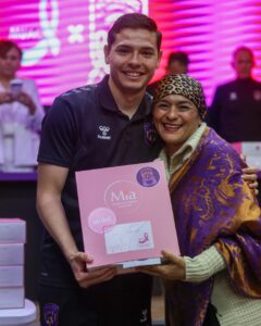 Después de las palabras de nuestro presidium, los jugadores Jair Dickey, Luis Ocón, Álvaro Vidales, Alejandro Zamora y David García, y el director técnico Gastón Obledo realizaron la entrega de las prótesis mamarias y los brasieres especiales para las beneficiadas por las actividades del lunes premier de la jornada 10 de la Liga Premier Serie A 2025/2026 entre Racing de Veracruz y Montañeses FC disputado el pasado 27 de octubre.