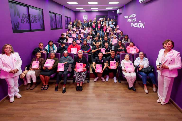 Racing de Veracruz y MUAC (Mujeres Activas Contra el Cáncer de Mama del Estado de Veracruz A.C.) realizaron la entrega de las 32 prótesis mamarias externas de silicon y brasieres especiales para mujeres que han sufrido una mastectomía derivado su padecimiento de cáncer de mama.